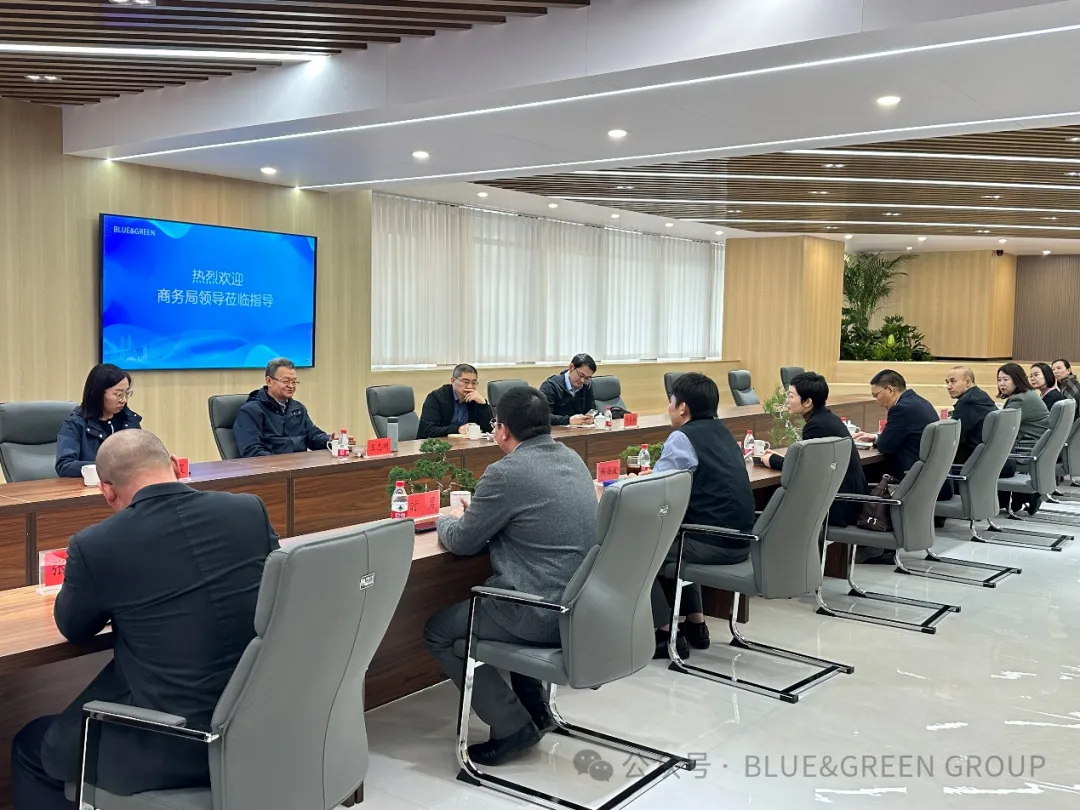 11月4日市商务局王志刚副局长携同市商务局流通处、商贸处等负责人莅临BLUE&GREEN调研,西海岸新区商务局王娟局长、BLUE&GREEN CEO杨海波陪同调研。